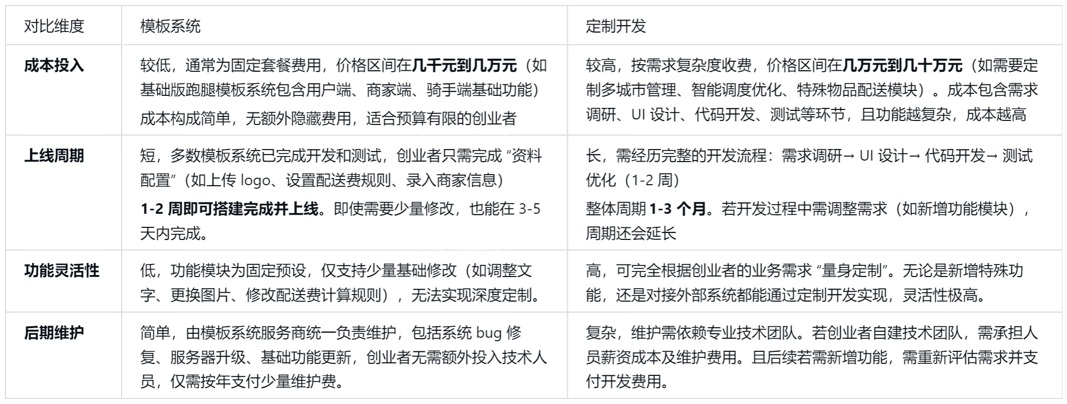很多下沉市场的创业者(如县城跑腿项目),初期预算仅 5-8 万元,既要承担骑手补贴、用户推广费用,又要搭建平台,此时模板系统的低成本优势尤为明显。例如,某县城创业者用 2 万元购买模板系统,上线后通过线下地推吸引首批用户,3 个月内实现盈利,后续再根据运营情况考虑是否升级功能。
