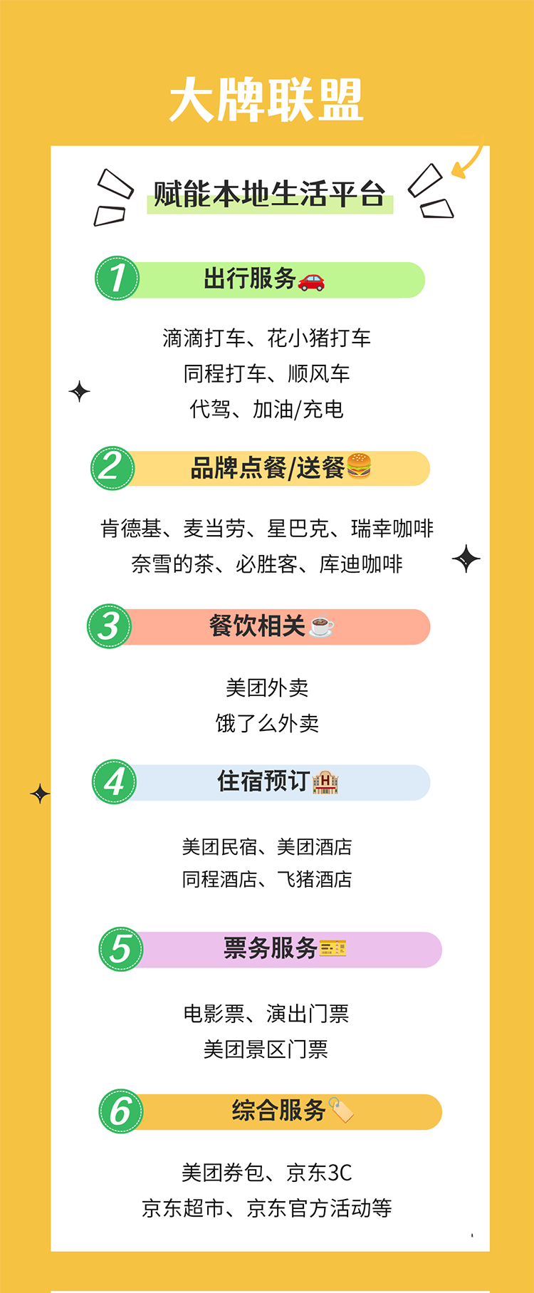 现诚挚邀请您,即刻启用【大牌联盟】功能。让我们并肩协作,共同为用户构建无缝、便捷、丰富的一站式生活体验,将您的平台潜力转化为实实在在的市场竞争力与增长动能。